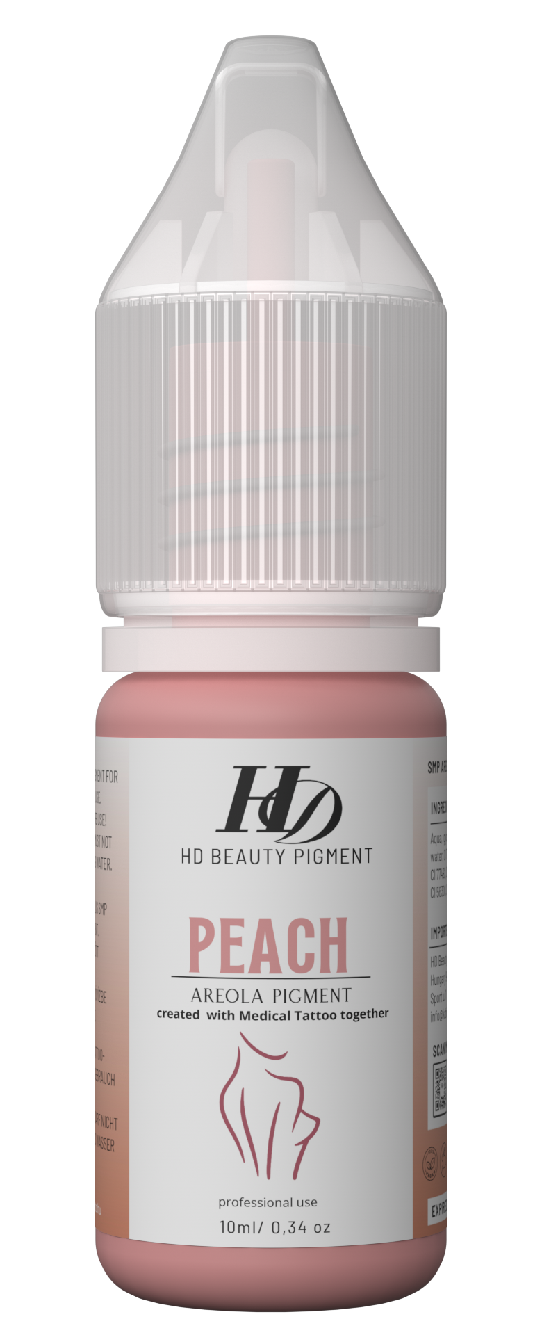 Az Areola Peach a legvilágosabb árnyalat az areola pigmentek palettáján. Finom, barackos tónusa kiválóan alkalmazható 3D hatás létrehozásához, valamint világosító és melegítő pigmentként is tökéletes. Lágy színe segít kiemelni az areola természetes fény-árnyék játékát, így a végeredmény élethűbb és plasztikusabb lesz.